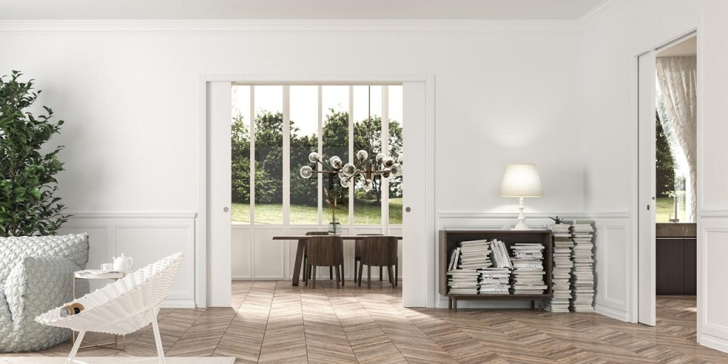 The Eclisse range of CLASSIC POCKET DOOR SYSTEMS, require finishing with architrave and suits both traditional and contemporary interiors. In the past in the UK, pocket doors tended to be associated with grander Victorian properties. The Victorians themselves were masters of invention and recognised the benefit of having doors that slide into pockets in the wall. The Victorian were well known for installing double pocket doors to open up and close off larger living spaces.