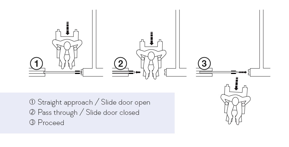 The awkward backward and forward motion needed when using a hinged door is completely eliminated