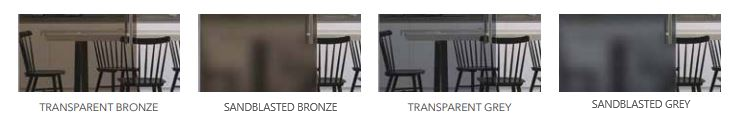 SANDBLASTED GREY OR BRONZE: The sandblasted grey and sandblasted bronze is more obscure than its transparent counterparts.