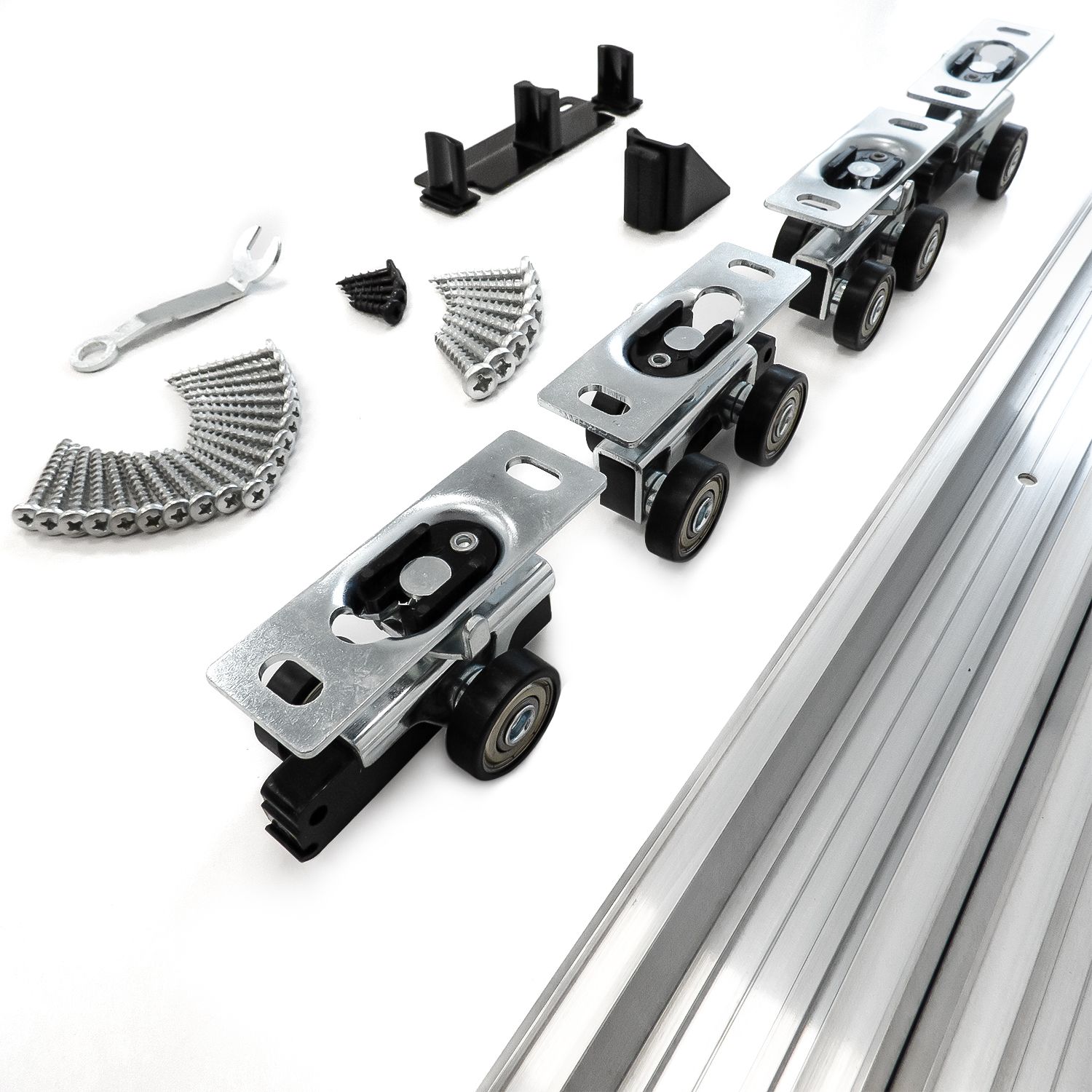 The mechanism features three-wheel hangers with ball bearings that ensure smoother operation. They make sure the bypass door will not get stuck while also promoting a quiet performance. Minimal force is required to move the door, as the triple-wheel design evenly distributes the weight. The mechanism’s low noise levels are also a result of this design.