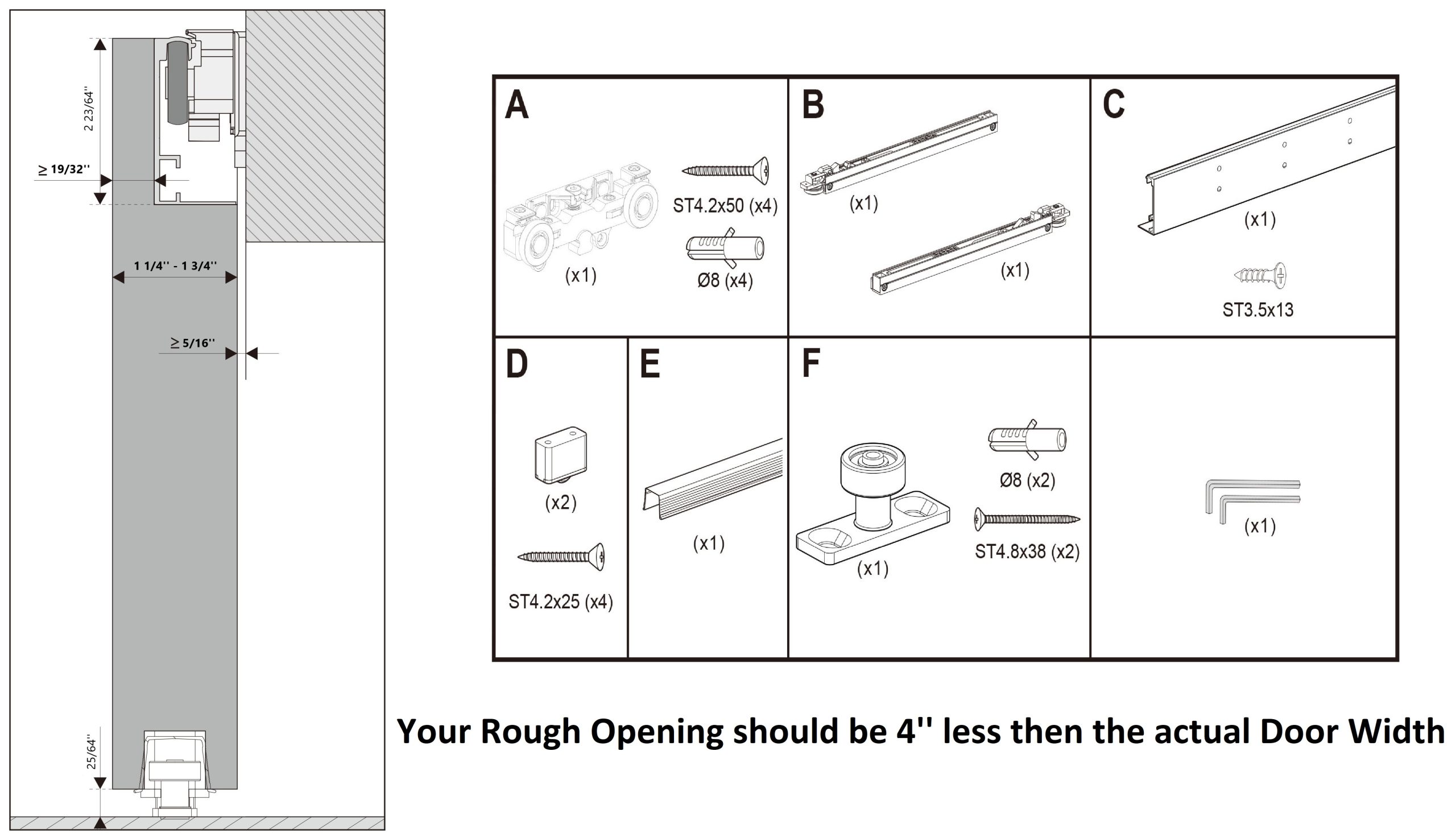 Villar Home Designs Heavy Duty Sliding Magic Door Hardware KIT 39 Inch with Soft-Close