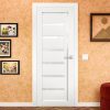 Even though it looks magnificent, this door slab isn’t just about the visual appeal. It’s built to withstand the tough test of time. The solid wood core offers exceptional durability and sound insulation, making any living or working area a quieter one. Plus, the polycarbonate milky glass is a game-changer – it’s much tougher than standard glass, meaning you won’t have to worry about easy breaks or safety issues. To make things even better, the prefinished PVC surface is resistant to moisture and scratches, keeping your door looking new for years to come.