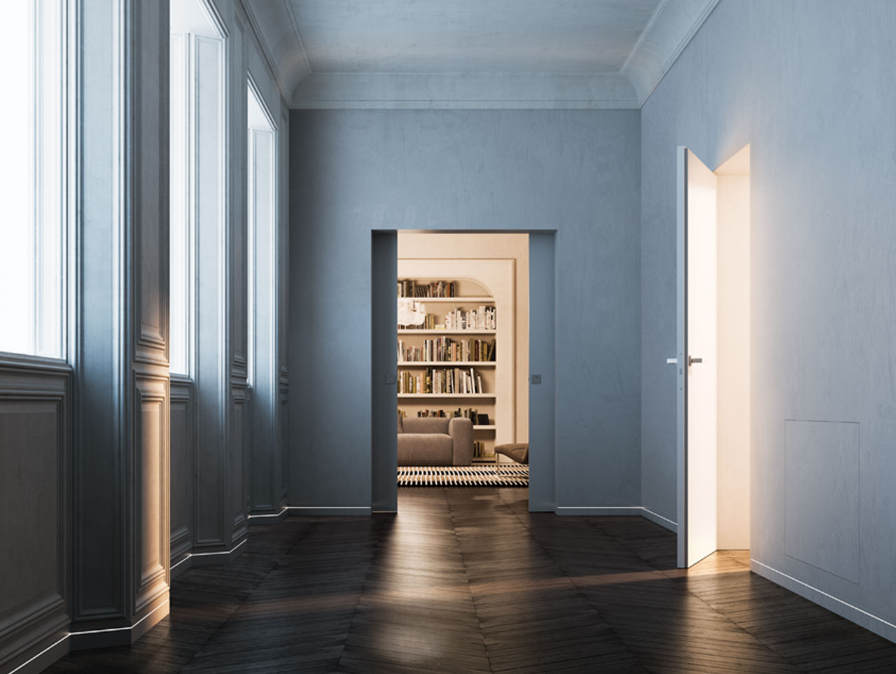 Syntesis® Flush Pocket Door System – no jambs or architrave for a crisp, flush finish
